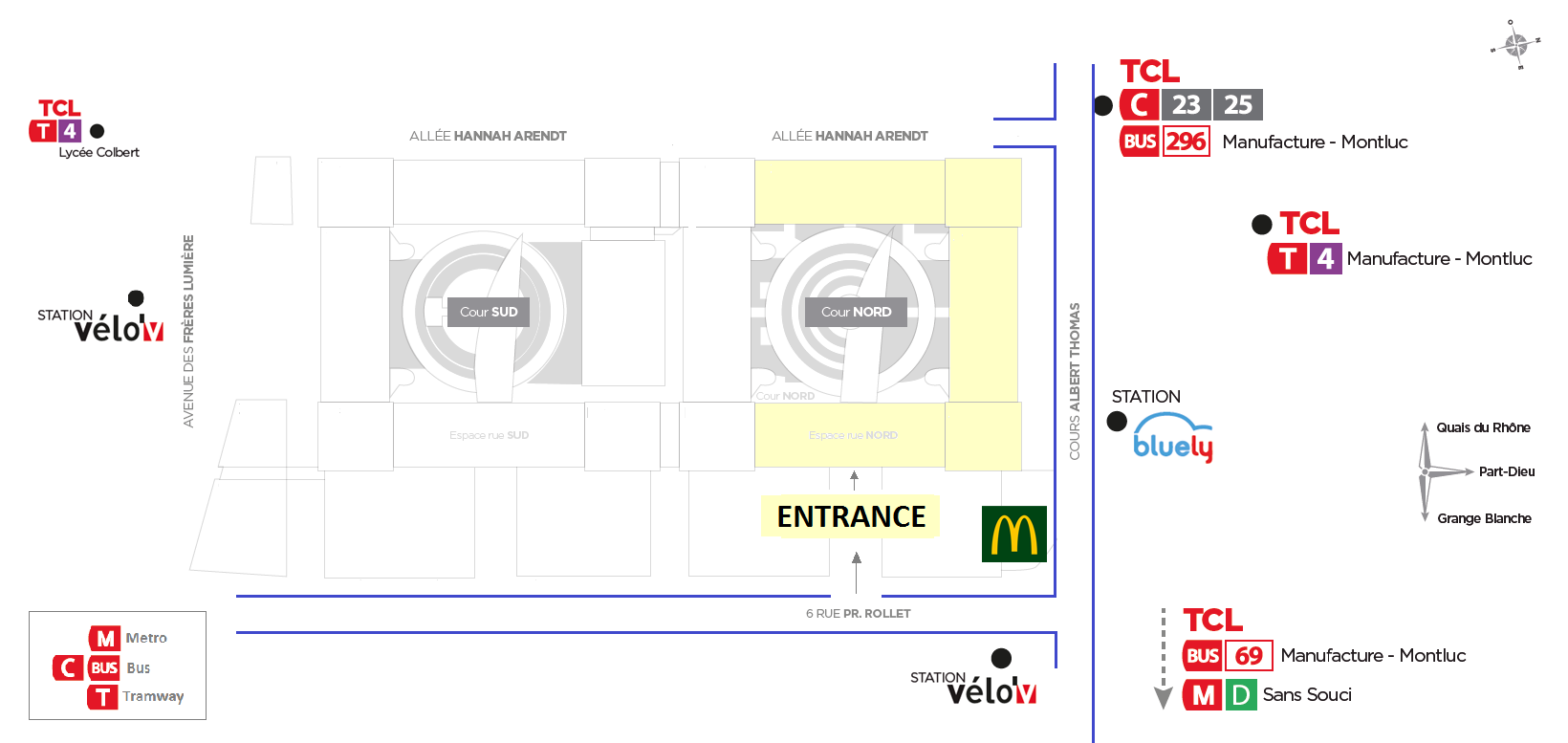- Bus lines C7, C25, 69 et 296 : Stop "Manufacture - Montluc"
