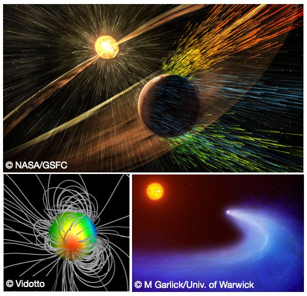 Illustrations of the effects of solar and stellar magnetic activity on planets. (Credit: NASA/GSFC, Vidotto, M. Garlick/Univ. of Warwick) The meeting was organised during one day and it consisted of three sessions: solar and stellar magnetic activity, effect of the activity on (exo)planets, and long term evolution of activity and its effect on habitability. The first session consisted of invited talks on the solar dynamo (Simoniello) and the stellar magnetic activity (Hussain), and two contributed talks discussing observational and theoretical aspects of stellar activity. The second session was dedicated to the effect stellar and solar activity has on planets. It kicked off with an invited talk (Bourrier) followed by four contributed talks discussing the activity effects both on bodies in our Solar System and on exoplanets. The last session was started with an invited talk (Ribas) on long-term evolution of stellar activity and continued with three contributed talks and a short poster presentation. The talks were all of high quality and provoked many questions and comments from the audience. The relatively small, but still a good sized audience of some 30 scientist, created a nice informal atmosphere that enabled very lively discussions. On the whole the meeting more than full-filled our expectations. The organisers would like to thank all the speakers and participants for making this a very fruitful Special Session. In addition, we would like to thank EWASS for making this meeting possible. More info about this special session may be found here. Heidi Korhonen (University of Copenhagen, Denmark) Aline Vidotto (Trinity College Dublin, Ireland) Contributed News