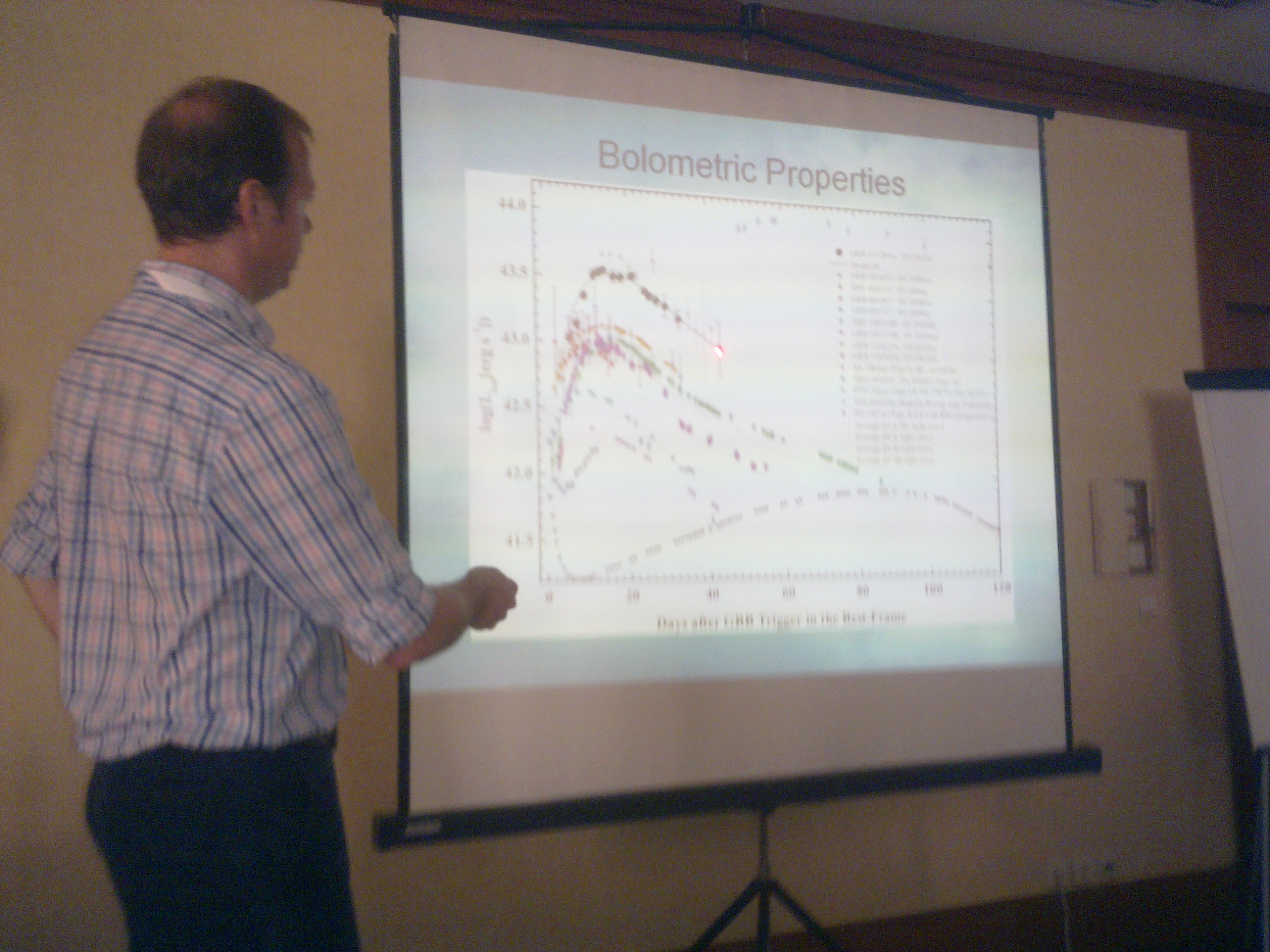 Zach Cano (University of Iceland), one of the invited speakers at the symposium, explaining the GRB-supernova connection. (Credit: Massimiliano De Pasquale) The symposium was well attendance with around 30-50 people attending at any one time. The presenters were from a broad range of European and international countries and several of these talks were presented by young researchers highlighting the continued interested in this area. The fact that there were symposia and special sessions on topics related to GRBs particularly made EWASS 2016 very productive for all. The organizers wish to thank all the speakers for making this symposium a great success. Particular thanks go to the organizers of the EWASS 2016 for having made this event possible. More info about this symposium may be found here. Ioannis Contopoulos (RCAAM, Academy of Athens, Greece) Samantha R. Oates (University of Warwick, UK) Dimitrios Giannios (Purdue University, USA) Andrew Levan (University of Warwick, UK) Massimiliano De Pasquale (MSSL-UCL, UK) Alberto Castro-Tirado (IAA-CSIC, Spain) Patricia Schady (MPE, Germany) Myrto Symeonidis (MSSL-UCL, UK) Antonios Nathanail (ITP, Goethe University, Frankfurt, Germany) Contributed News
